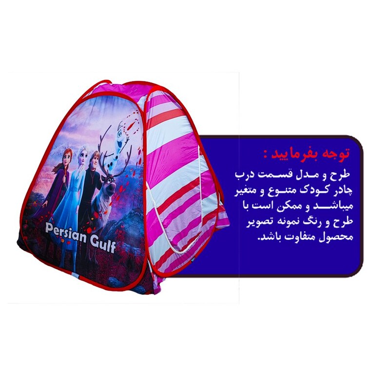 چادر کودک یکی از بهترین وسیله های بازی برای کودکان می باشد و آن هارا ساعت ها به بازی و سرگرمی مشغول میکند . چادر های کودک در رنگ و طرح های متنوع و جذاب تولید شده تا دنیای کودکان را زیبا تر کند . برای کودکان از نظر ذهنی بسیار مشغول کننده و باعث افزایش خلاقیت ، شادابی و اعتماد به نفس می شود. از منظر تربیتی می توان کودکان را به حفظ نظم ، پاکیزگی و مسئولیت پذیری تشویق کرد. این محصول با بهره گیری از فناوری چاپ دیجیتال ، استفاده از پارچه مرغوب شمعی و پولیستر و فنر های مستحکم تهیه شده است . محیط داخل چادر محلی مناسب برای اسباب بازی های کودکان می باشد این محصول با ظاهری زیبا دارای یک درب و پنجره می باشد و همچنین به راحتی در تمامی فضاهای باز و بسته قابل استفاده است همراه این چادر کودک یک عدد کیف برای حمل و نگهداری تقدیم عزیزان می شود.