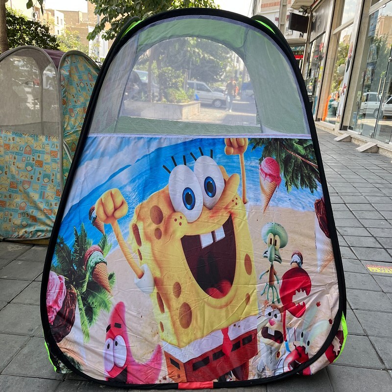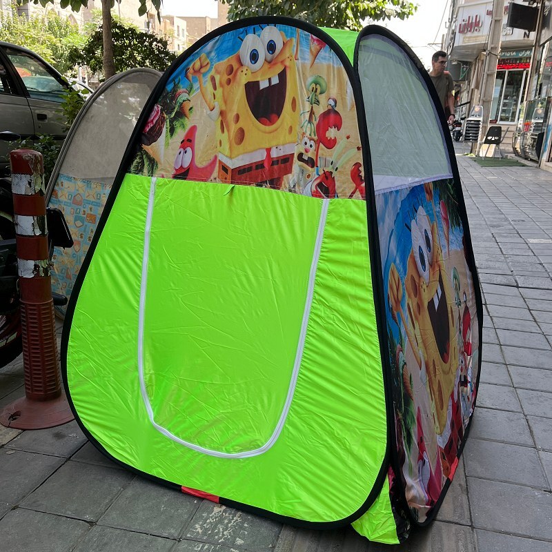 چادر بازی کودک مدل فنری تاشو طرح باب اسفنجی و پاتریک با درب زیپی جنس شمعی کد2
