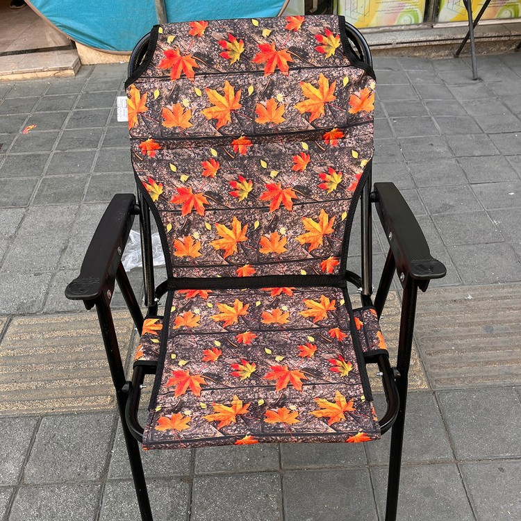 صندلی تاشو مسافرتی فوم دار 7فنره کم جا و محکم با تحمل وزن 100 کیلو طرح خزان کد1
