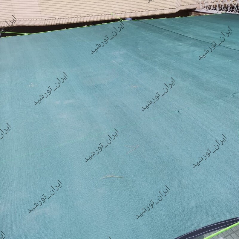 تور شید سایبان ۸۰ ٪ رنگ سبز دور دوزی شده و حلقه دار (دور تا دور کار به فاصله ۱ متر) سایه دهی عالی. آنتی یو وی دار و نسوز در برایر نور خورشید
