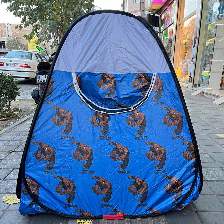 چادر بازی کودک و نوجوان سایز دونفره مدل فنری طرح مردعنکبوتی (اسپایدرمن) با پنجره زیپی و کاور