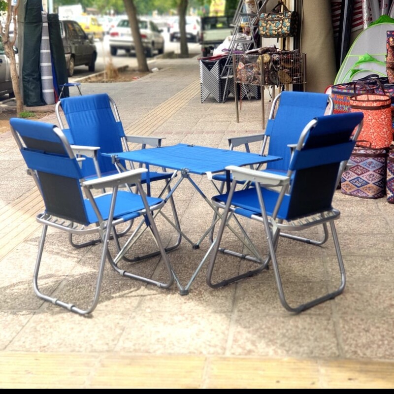 ست چهار نفره میز و صندلی فوم دار با مفتول زیر و نوار کف و پشت با دسته های محکم و جالیوانی دار