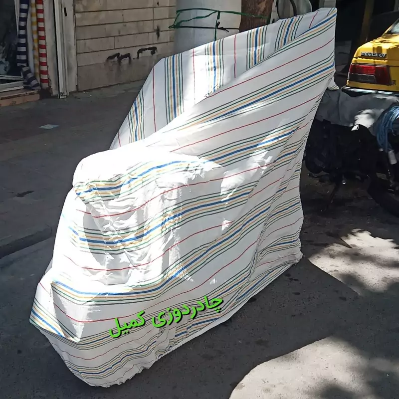 با درود و احترام چادر موتورسیکلت برزنتی با الیاف نخ بالا مقاومت بالایی در برابر آفتاب دارد بدلیل عدم وجود مواد در برابر چنگال گربه مقاوم بوده و قابل شستشو می باشد در جلو و وسط چادر محل اتصال دارد عقب و جلو کش دوری شده و در باد شدید محکم روی موتور میماند به همراه یک کاور با بسته بندی تقدیم شما می گردد