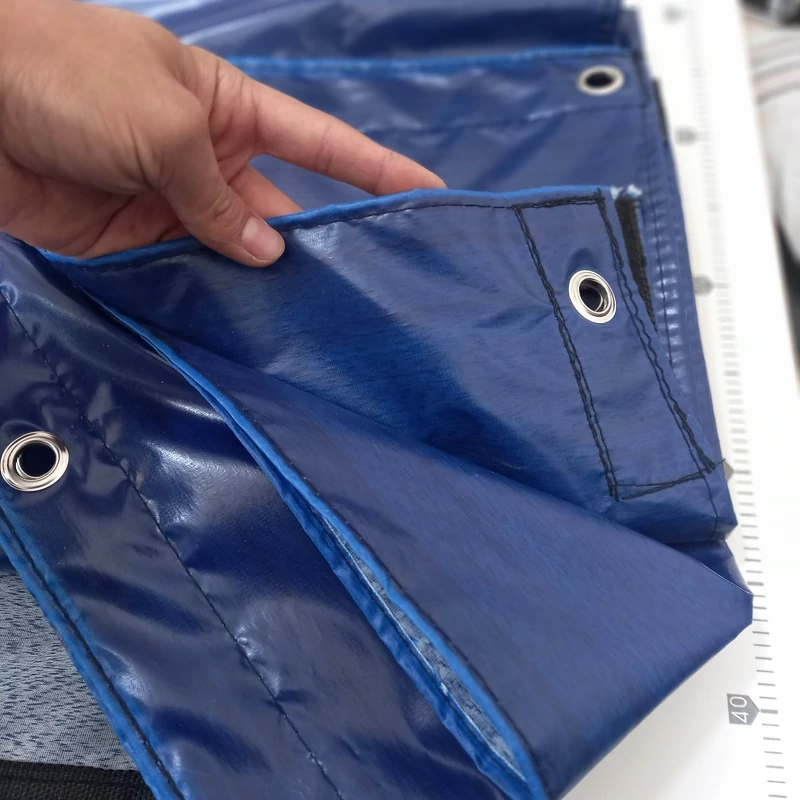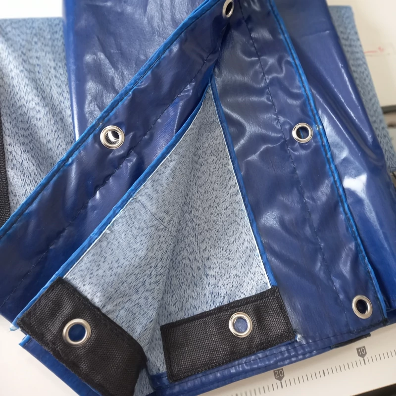 برزنت ضدآب شمعی دوخت پرده حیاط و بالکن و راه پله برای جلوگیری از ورود سرما و آب همراه با حلقه پرسی و نوار دوزی و دور دوخت رنگ زرد ابعاد ۲ در ۱.۷ متر طول