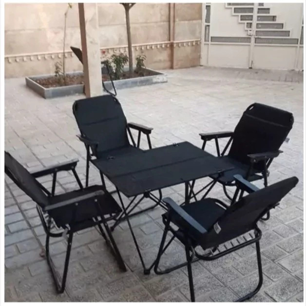 ست چهار نفره صندلی ساحلی تاشو 9 فنر و میز مسافرتی تاشو(پس کرایه)