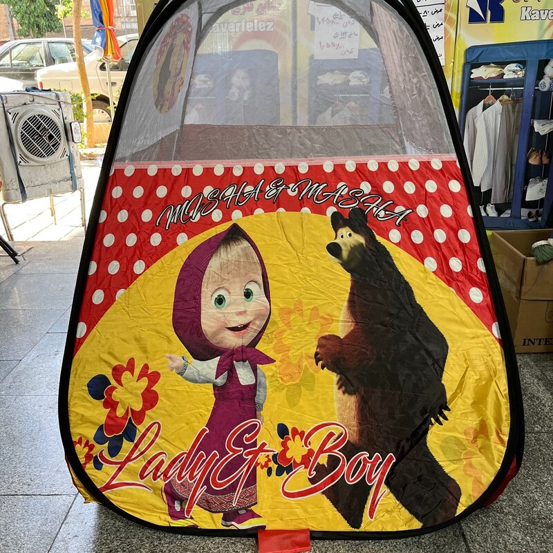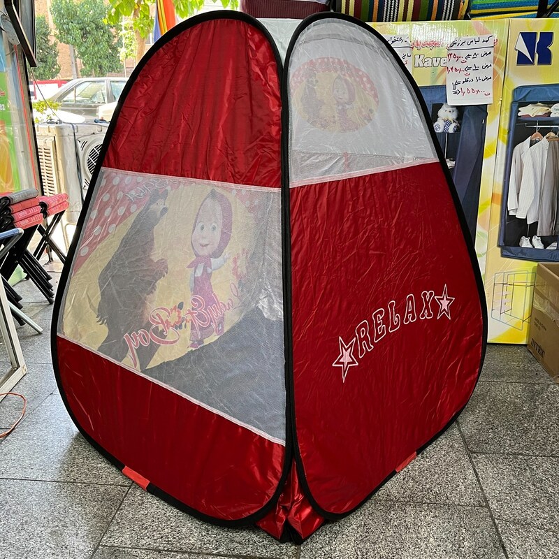 چادربازی کودک طرح آشا و میشا رنگ قرمز خیمه کلبه چادربچه اسباب بازی شال تیشرت